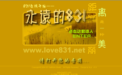 2004年2月28日 永远的831正式挂牌成立,并由831网络工作室CEO王佳冬亲笔写的小说“距离也是一种美丽”作为网站的标志